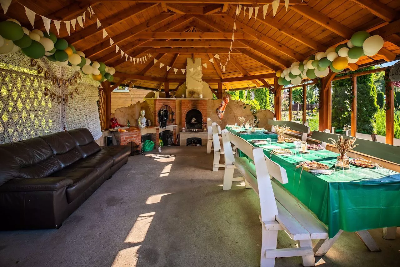 W altanie z grillem i wędzarnią istnieje możliwość organizacjii imprez okolicznościowych oraz zamówienia cateringu Koła Gospodyń Wiejskich z regionalnymi przysmakami.